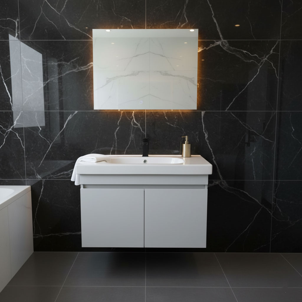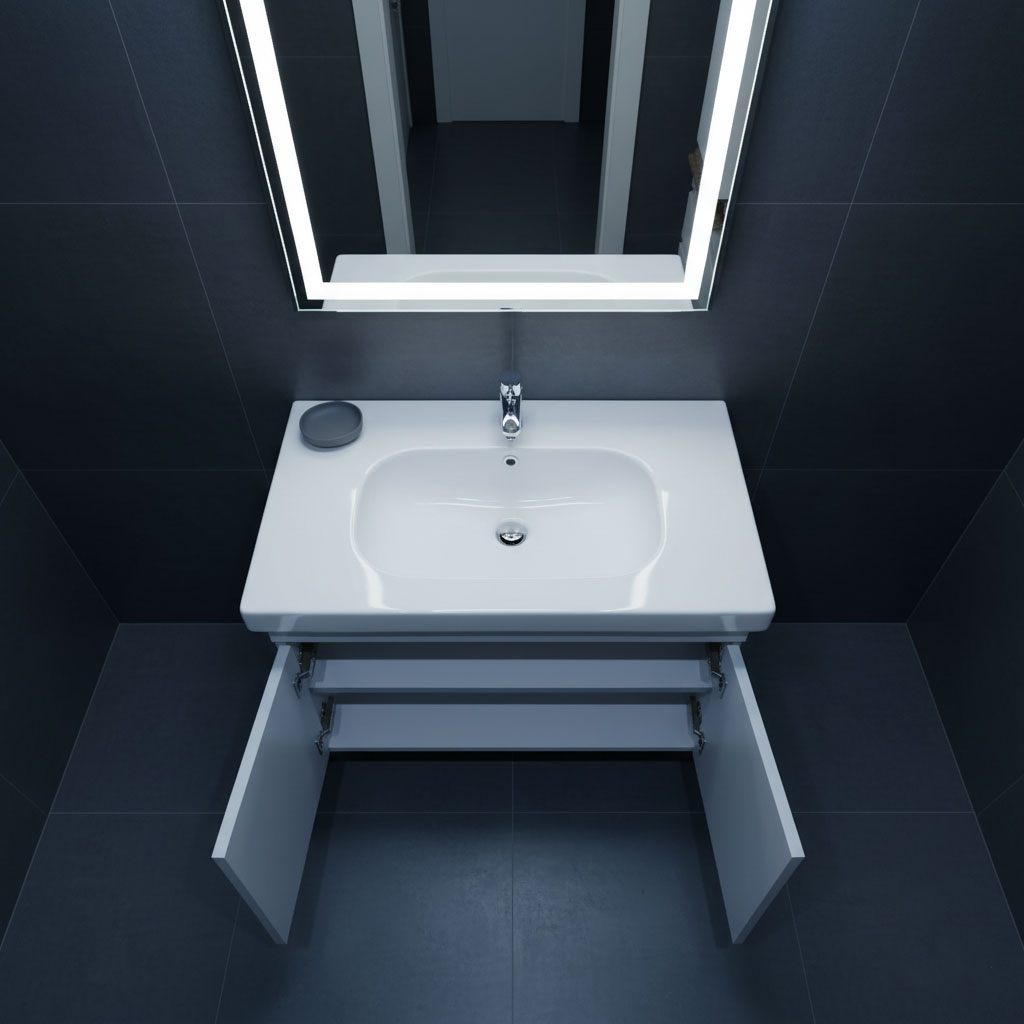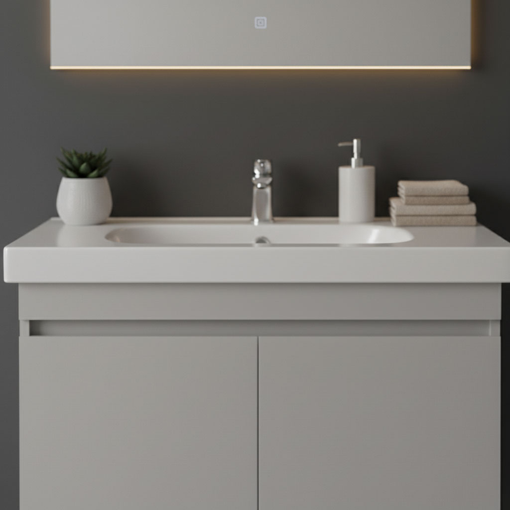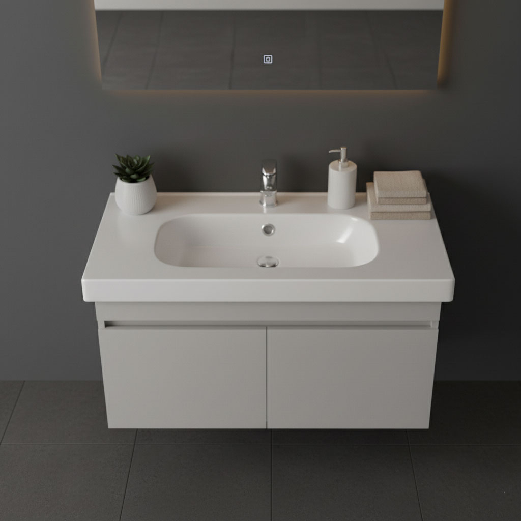 وحدة حمام عصرية بتصميم مميز تضم ضلفتين واسعتين للتخزين العملي وتنظيم مثالي للمستلزمات اليومية، مع مقبض بيلت إن أنيق يبرز الخطوط النظيفة ويمنح مظهراً راقياً. تشطيب عالي الجودة وخامات متينة تدوم طويلاً. يمكن تصنيعها بعدة مقاسات وألوان حسب الطلب، وتناسب أحواض ديورافيت وإينوفا وإيديال وبليزا لتكمل حمامك بمظهر مرتب أنيق عصري عملي متناسق مريح يومي ثابت جذاب للغاية