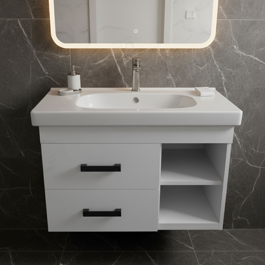 وحدة حمام عصرية بتصميم مميز تجمع بين درجين عمليين وبوكسين جانبيين لتنظيم مثالي للمستلزمات اليومية والإكسسوارات، مزودة بمقبض خارجي أنيق يضيف لمسة فخامة عصرية. تشطيب عالي الجودة وخامات متينة تدوم طويلاً. يمكن تصنيعها بعدة مقاسات وألوان حسب الطلب، وتناسب أحواض ديورافيت وإينوفا وإيديال وبليزا لتكمل حمامك بمظهر مرتب أنيق عصري عملي متناسق مريح يومي ثابت