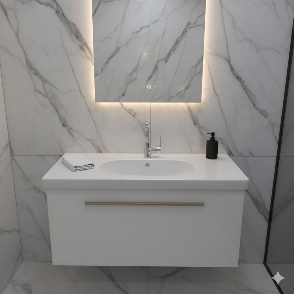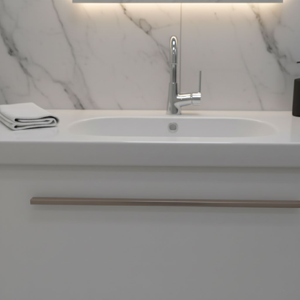 وحدة حمام عصرية بتصميم راقٍ ومميز تضم درجاً واحداً عميقاً يوفر مساحة تخزين كبيرة لتنظيم المستلزمات اليومية بسهولة، مزودة بمقبض خارجي ذهبي أنيق يضيف لمسة فخامة وديكور جذاب. تشطيب عالي الجودة وخامات متينة تدوم طويلاً. يمكن تصنيعها بعدة مقاسات وألوان حسب الطلب، وتناسب أحواض ديورافيت وإينوفا وإيديال وبليزا لتكمل حمامك بمظهر مرتب أنيق عصري عملي متناسق مريح يومي ثابت جذاب للغاية
